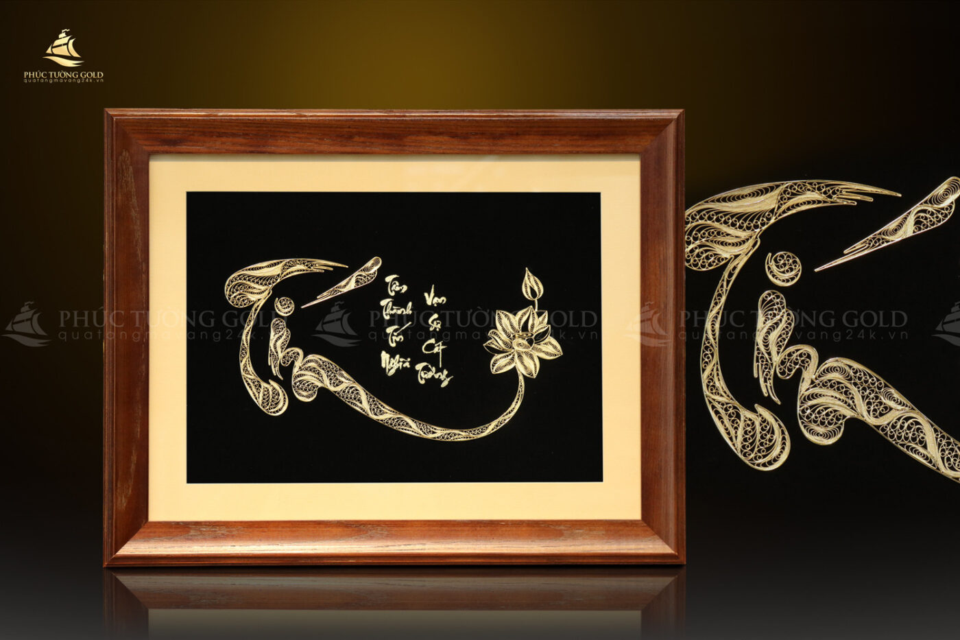 Tranh thư pháp chữ Tín mạ vàng 24k