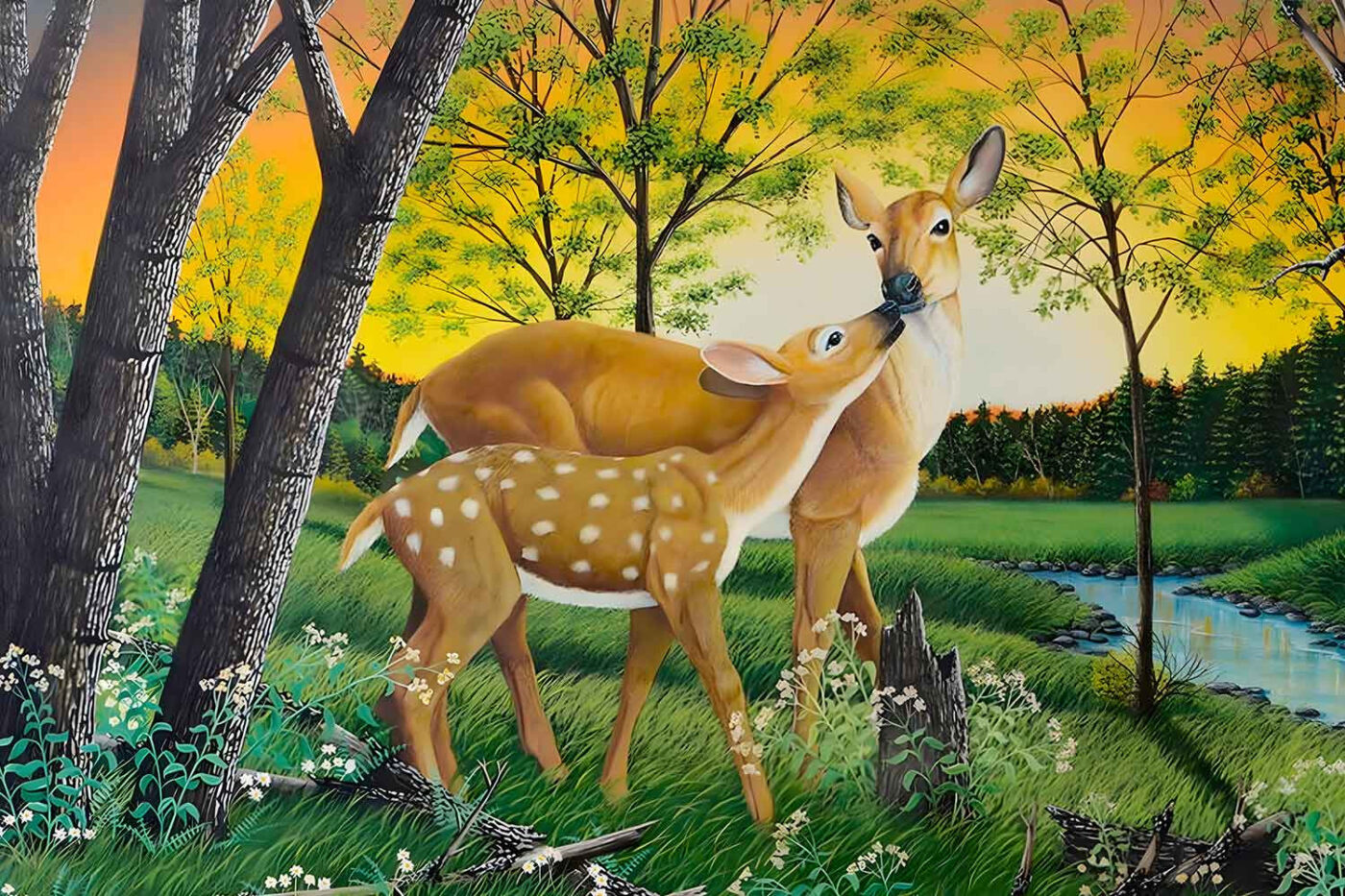 Hươu là loài vật hiền lành, ăn cỏ và không gây hại cho các loài khác. Do đó, hươu tượng trưng cho sự bình yên, hòa hợp. Tranh ảnh hươu treo trong phòng khách hay phòng ngủ sẽ mang đến cảm giác thư thái, nhẹ nhàng cho gia chủ.